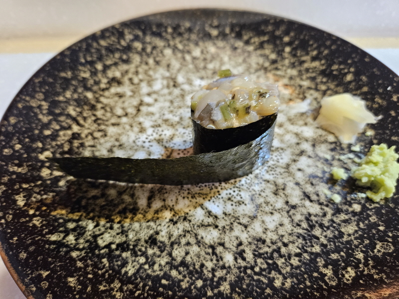 처음으로 나왔던 도미초밥은 씹는 순간 파맛이 화악~ 도는데 정말 신세계였어요.