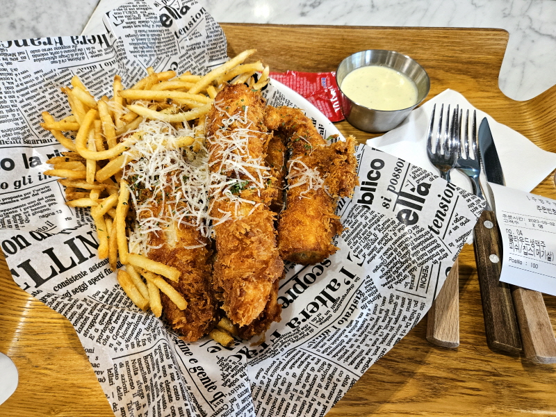그리고 맥주 안주 겸 간식으로 주문한 피쉬앤칩스.