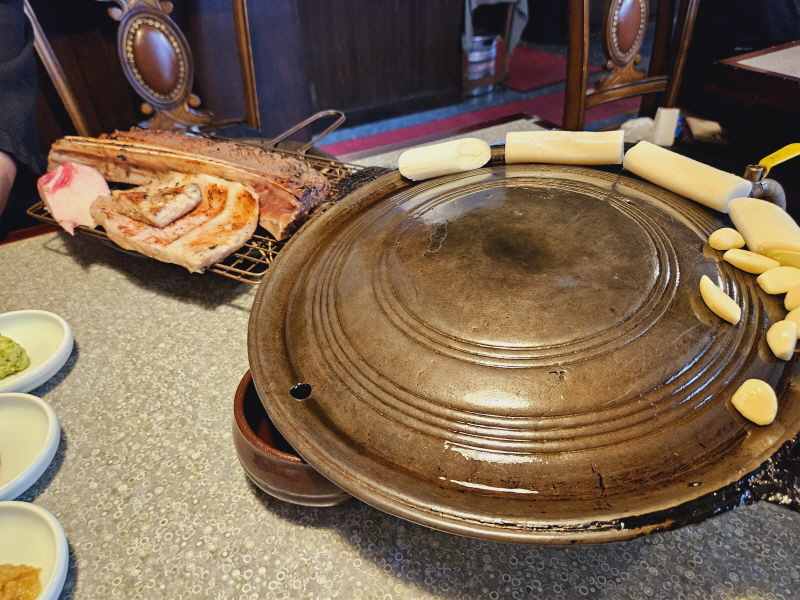 솥뚜껑 모양의 고기판이 아주 반질반질 합니다.