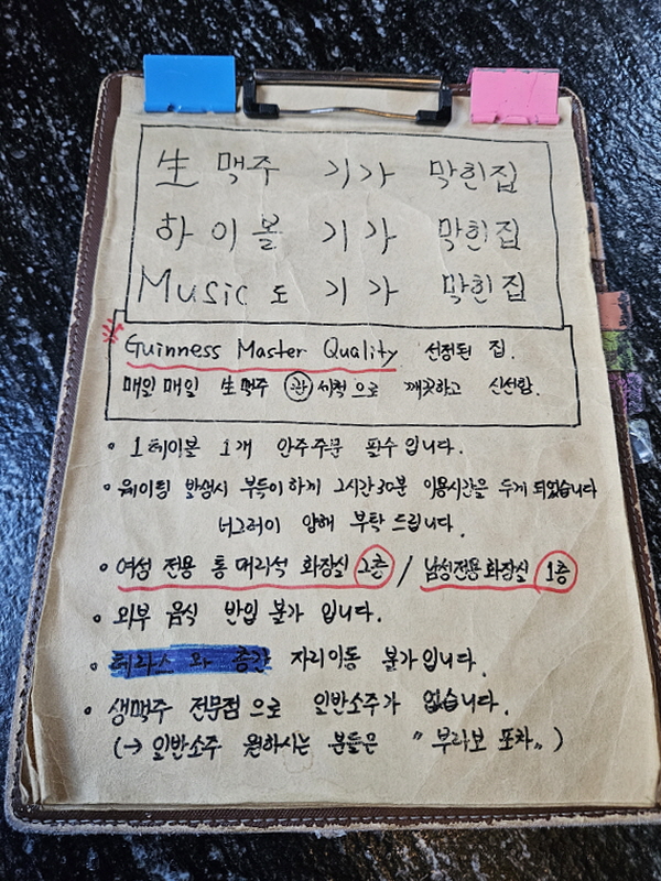 여긴 생맥주 전문점이라 소주를 원한다면 '부라보 포차'로 가셔야 해요.